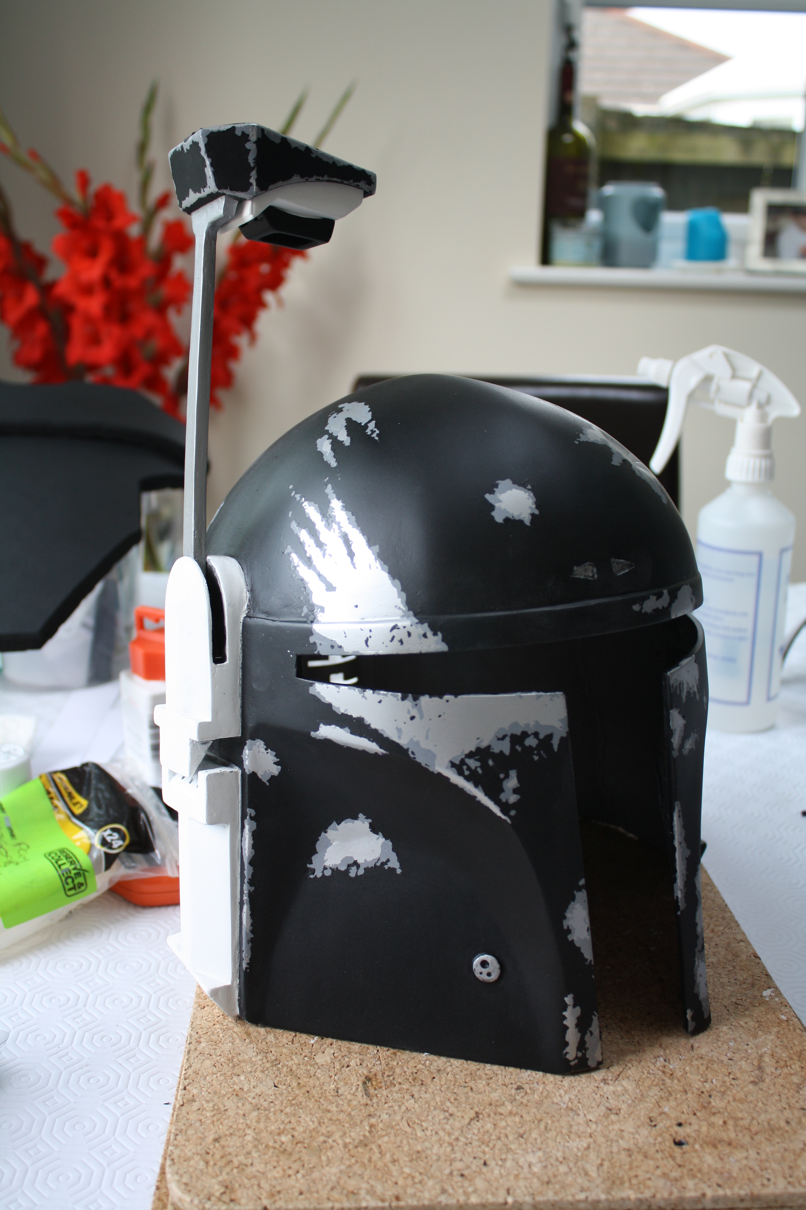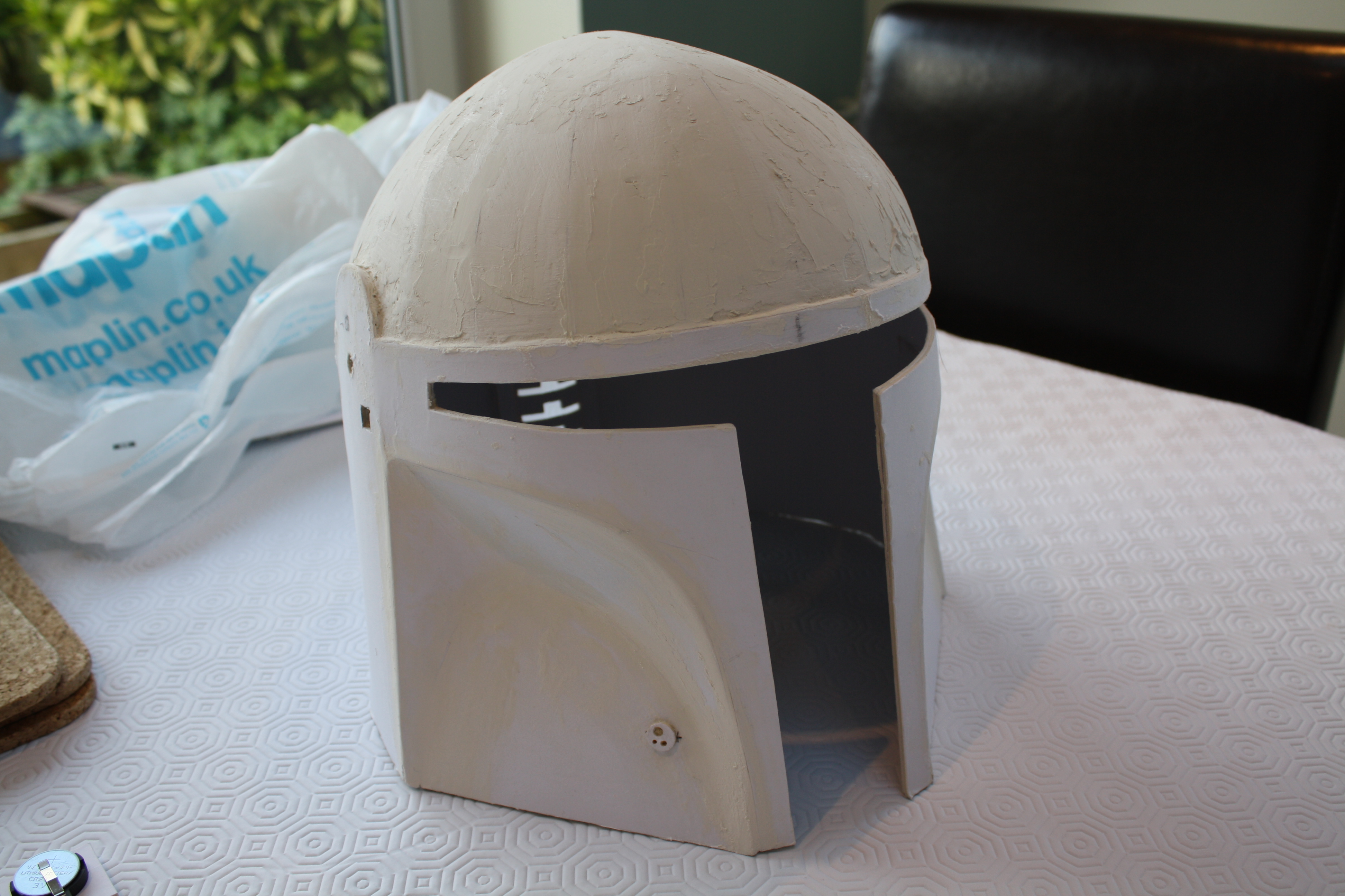Just a quick word about the Boba Fett helmet worn by my eldest son: it’s home-made using just cardboard and Polyfilla, except for the visor which is acrylic bent into shape with a heat gun. My original plan was a standard green colour scheme (I’ve bought the paints so it might still happen). The whole ‘Boba SWAT’ thing was something we knocked up in a hurry because we only decided to head along to the Comic Con at the last minute. Some photos:
