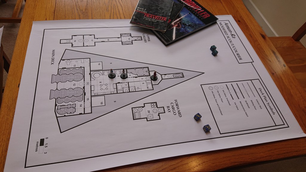 I like using 28mm miniatures when I’m Refereeing Traveller and I’ve found a cheap method of printing A1 and A0 paper plans for less than £2 each.