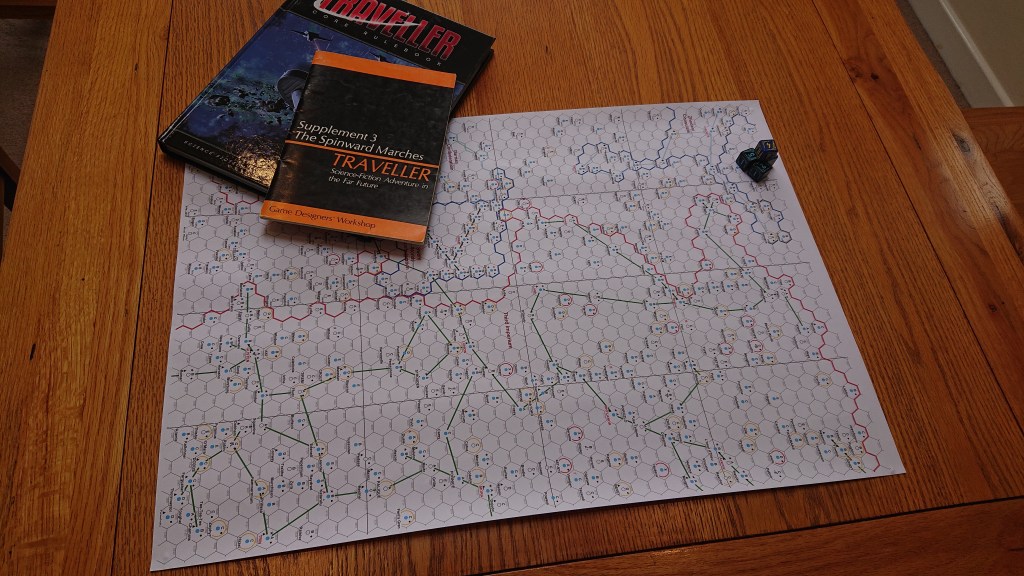 I’d also recommend printing sector maps which you can download from Traveller Map. They look great at A2 size in full colour. My brain is still getting used to see a white background instead of black! I’d strongly recommended this as an alternative to using your original Traveller maps which are now probably quite valuable. I had a lucky escape recently with mine and a knocked-over drink!