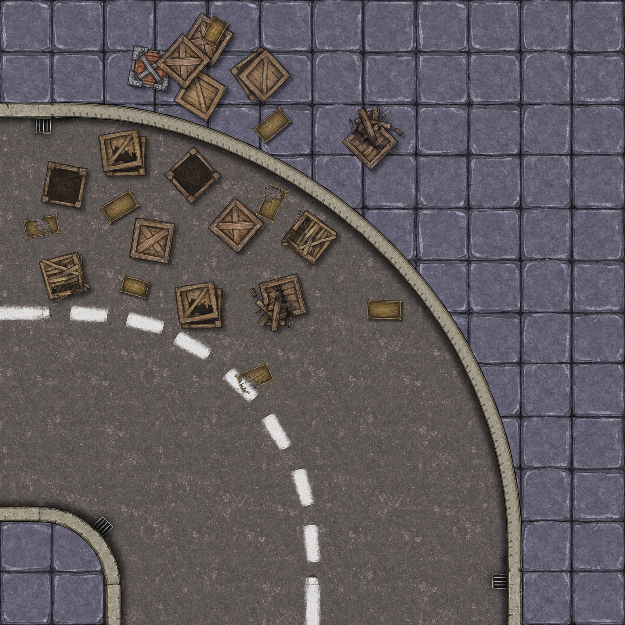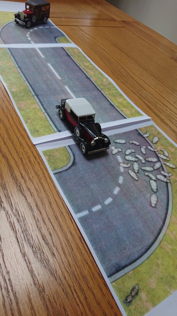 Taking Mr Skorkowsky’s advice I bought some Models of Yesteryear cars and then I decided to create some road tiles using Inkarnate that I could drop onto the table. I’m planning on using these with the Chase rules in the Keeper’s Rulebook (p.130ff).
